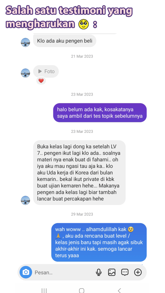 Ratusan testimoni lainnya bisa cek di IG Story @kelasbahasakorea ya^^