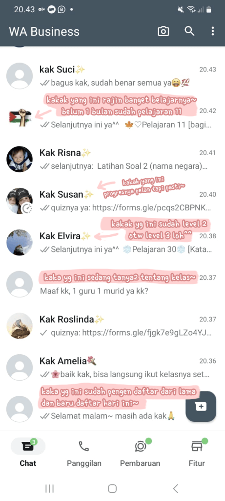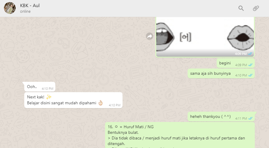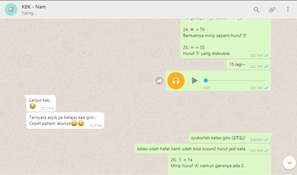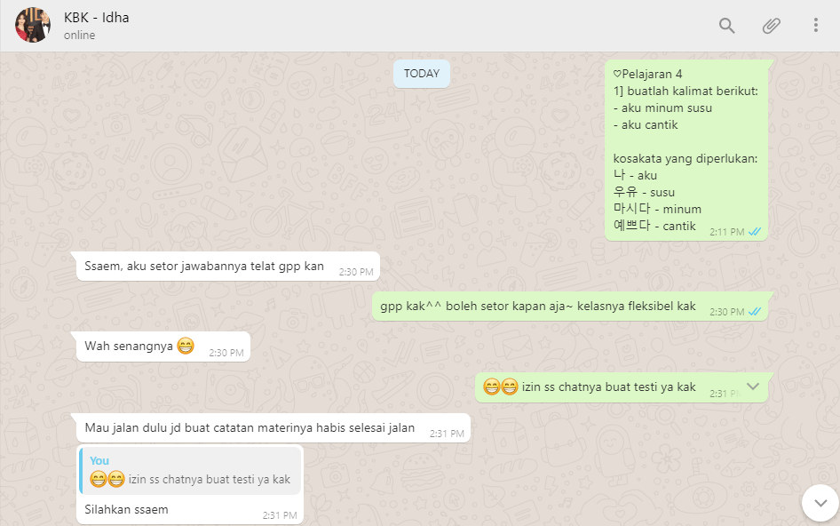 Pengajarnya juga menggunakan Whatsapp versi web lewat Komputer, jadi balas chatnya bisa fast respon^^